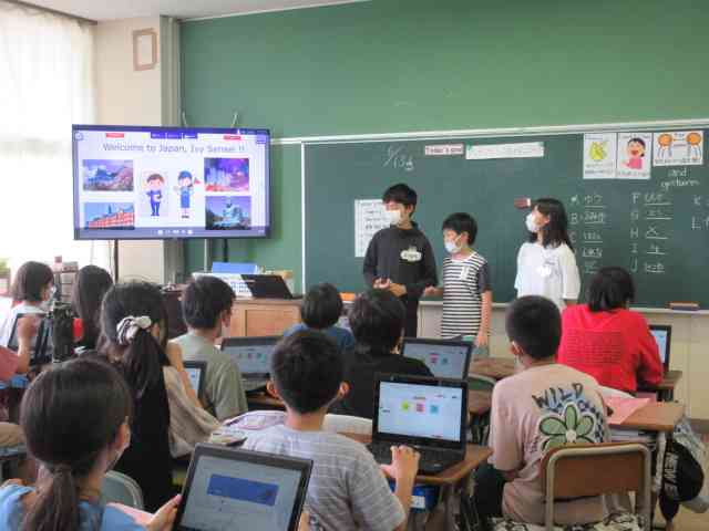 外国語の学習で、ALTに日本の紹介をしました。 プレゼンテーションのスライドを作り、 英語で紹介しました。
